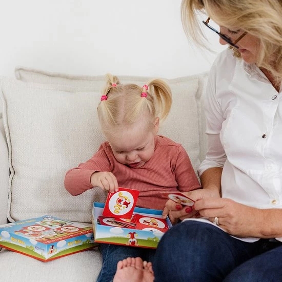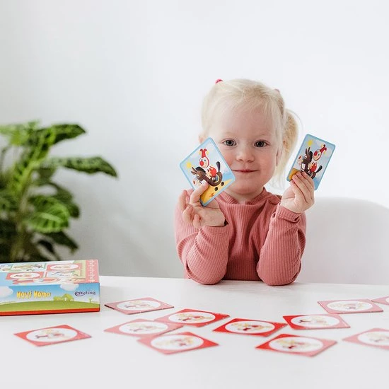 Draai telkens twee kaartjes om en probeer te onthouden waar twee dezelfde exemplaren liggen. Wie uiteindelijk de meeste paren heeft wint. Op de kaartjes staan afbeeldingen van Jokie, Jet, boerderijdieren, fruit en nog veel meer.