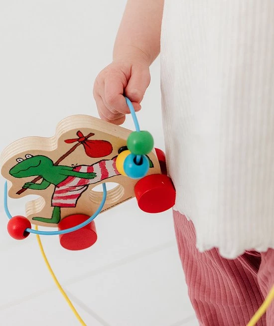 Is je kleine moe van al het lopen? Dan kan hij verder spelen met de kralen, deze kunnen van de ene naar de andere kant geschoven worden en bevorderen de fijne motoriek en oog-hand co?rdinatie. Veel speelplezier!