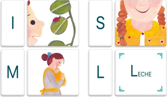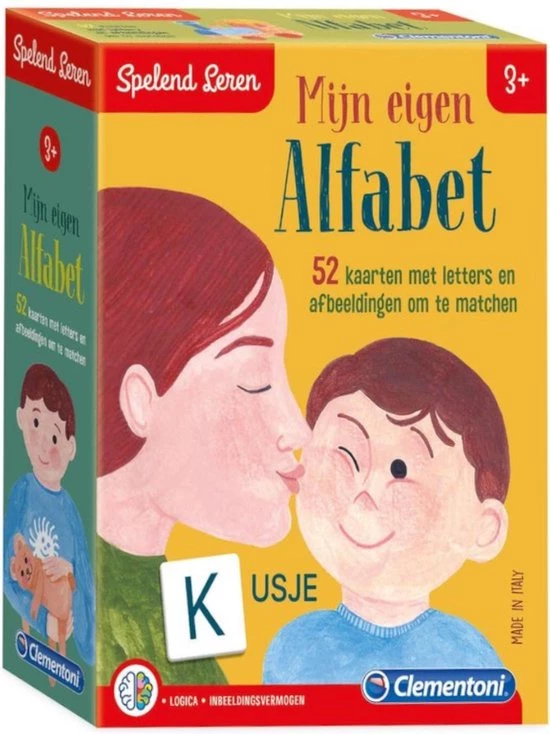 K is voor kus, die ik van mama krijg … Een schattig en educatief spel dat kinderen de letters van het alfabet leert. Met 52 ge?llustreerde kaarten leert je kind de letters van het alfabet associ?ren met de kleine details waar de dag uit bestaat. De kaarten zijn zelfcorrigerend: het kind kan het antwoord controleren door de kaarten gewoon om te draaien.