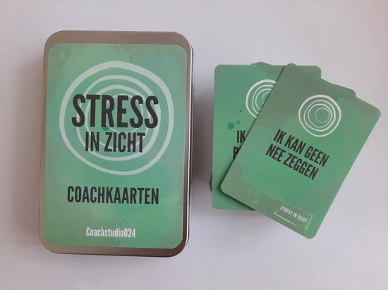 Coachkaarten Stress in zicht zijn ontwikkeld als coach en gesprekskaarten voor professionals. Deze tool is in te zetten bij gesprekken over stress, onrust en druk. De coachkaarten geven snel overzicht en inzicht in de remmende stress gedachten en belemmerende overtuigingen.