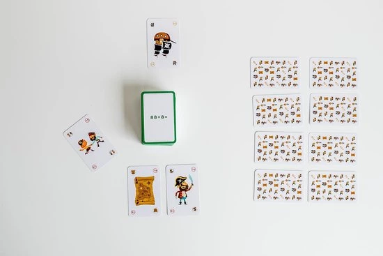 Los sommen op en verzamel kaarten om de piratenschat te vinden. Wie als eerste de schat vindt, wint het spel.