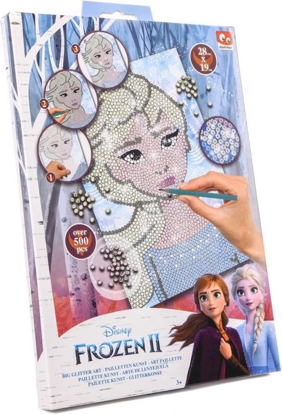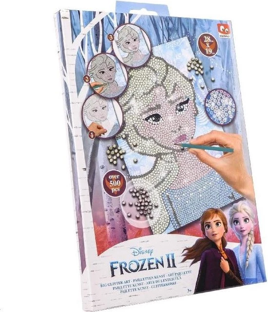 Maak een mooi glitter-schilderij met Disney Frozen 2 pailletten kunst. Geschikt voor kinderen vanaf 3 jaar.