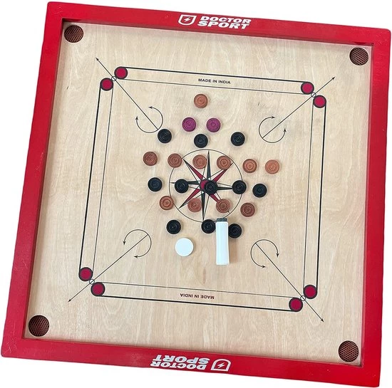 Doctor Sport Origineel Carrom Spel – Made In India – Compleet Met Stenen, Poeder, Striker 59 X 59 Cm Klasse En Geweldig
