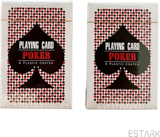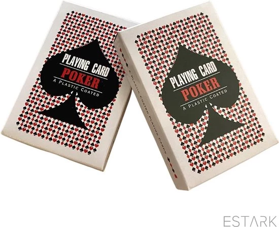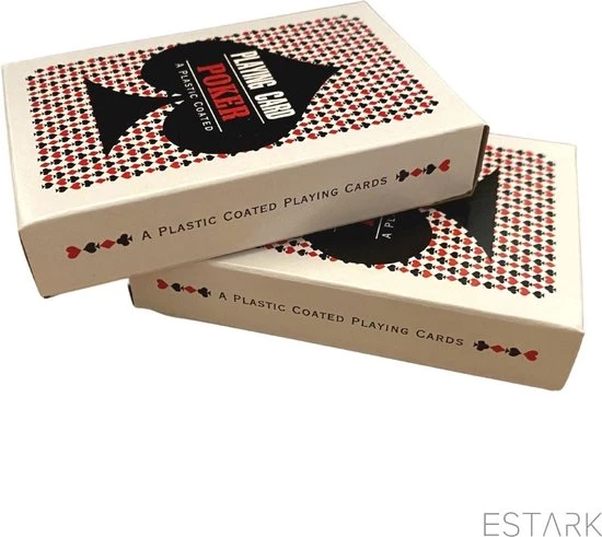 ESTARK Luxe Professioneel kaartenspel. Twee volledige sets elk in eigen onderverpakking. Degelijke kwaliteitskaarten om uren speelplezier te beleven. Ook geschikt voor poker en omdat deze kaarten geplastificeerd zijn gaan deze jaren mee.