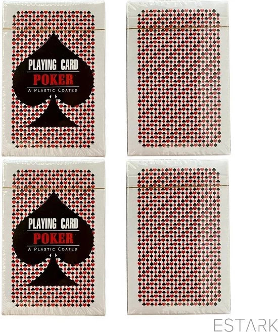 ESTARK Luxe Professioneel kaartenspel. Vier volledige sets elk in eigen onderverpakking. Degelijke kwaliteitskaarten om uren speelplezier te beleven. Ook geschikt voor poker en omdat deze kaarten geplastificeerd zijn gaan deze jaren mee.
