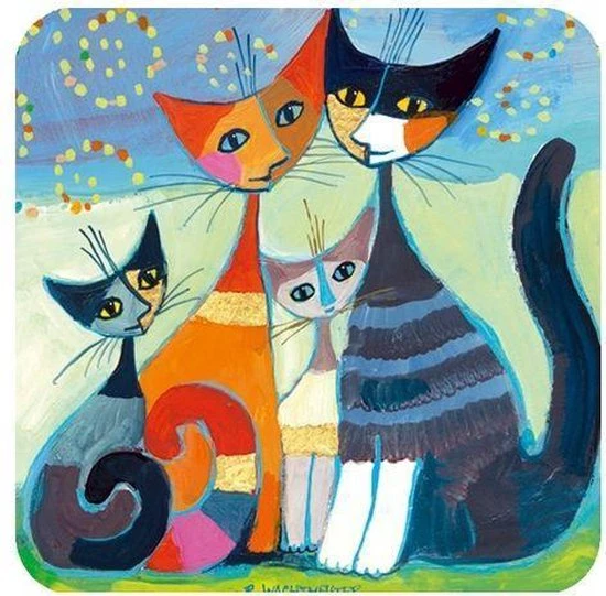 Memo spel van de kunstenares Rosina Wachtmeister met 36 kaarten. Uiteraard vol met katten afbeeldingen. 36 kaarten (18 paar), kaartformaat: ongeveer 5 x 5 cm.