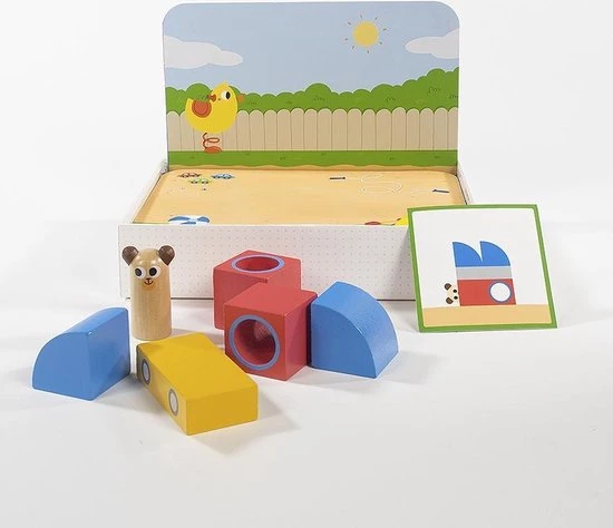Ontwikkel logische en ruimtelijke ori?ntatie door de stukjes zoals aangegeven op de kaarten te leggen. 3 niveaus van oplopende moeilijkheidsgraad, met de oplossing op de achterkant.