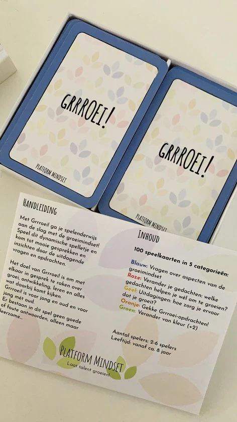 Met Grrroei! ga je spelenderwijs aan de slag met de groeimindset. Speel dit dynamische kaartspelletje en kom tot mooie gesprekken en inzichten door de uitdagende vragen en opdrachten.