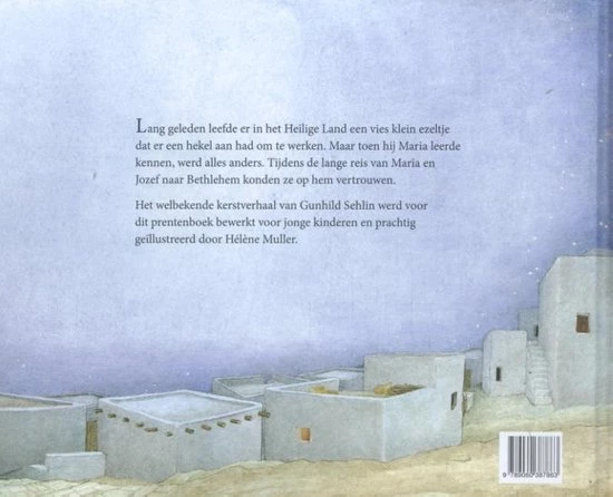 Dit welbekende kerstverhaal van Gunhild Sehlin werd een mooi verhaal voor jonge kinderen, verteld vanuit het ezeltje van Maria, met vriendelijke tekeningen van illustrator Hélène Muller.