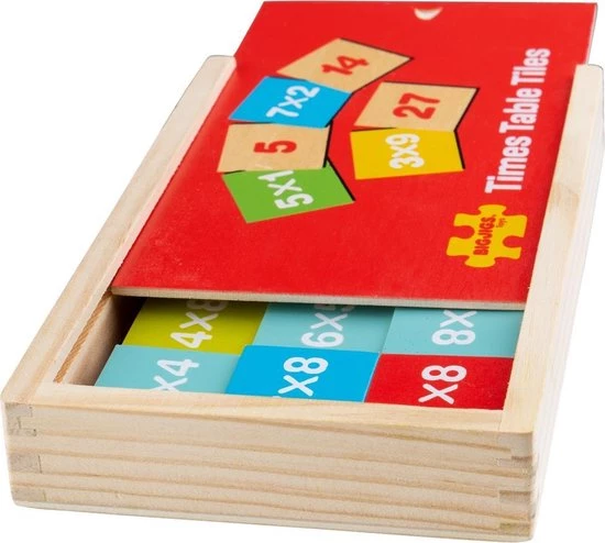 Houten Rekenspel – BIGJIGS – Tafels Oefenen – Compact Doosje Met 81 Opgaves