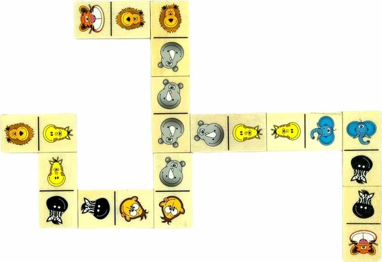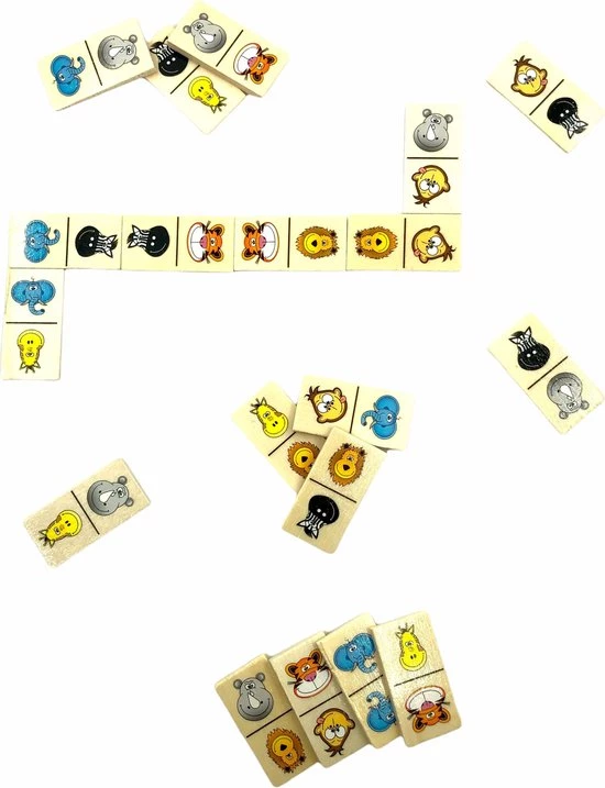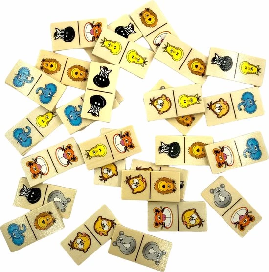 Leuk houten domino spel met leuke vrolijke afbeeldingen van dieren. Het houten kistje bevat 28 dominostenen. Handig om bijvoorbeeld mee te nemen op reis. Vanaf 3 jaar.