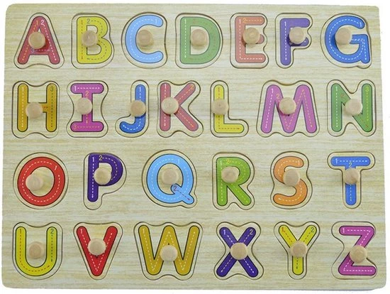 Houten invoegspel voor kinderen met letters AZ-vormen