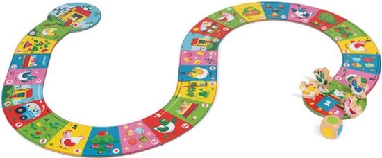 Het vormt ook een eerste benadering van het bordspel in zijn essentiele principes: dobbelstenen gooien, je pion verplaatsen op een baan, het finishveld bereiken, werken aan het idee van winnen of verliezen, evenals het begrip orde (1ste, 2de, 3de,…)