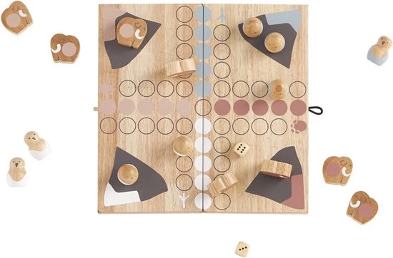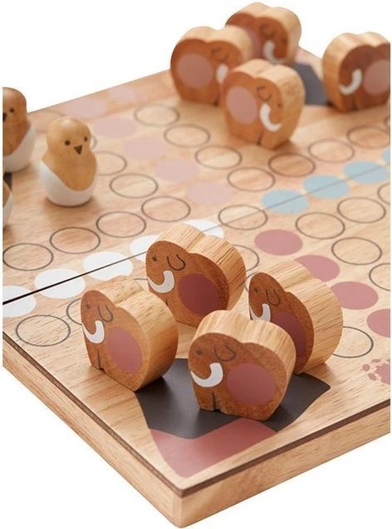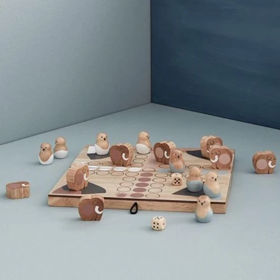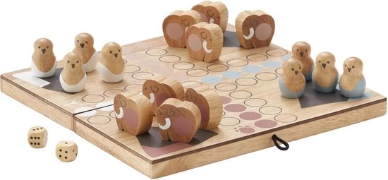 Wie ken het niet? Het bekende ludo spel, dit is precies dezelfde uitvoering, maar dan voor kinderen! Welk team kies jij? Team Mammoet? Of team kuikentje? Het bord vouwt zichzelf in twee en vormt een opbergdoos voor de stukken. Spelinstructies zijn inbegrepen.