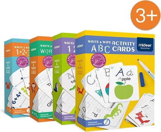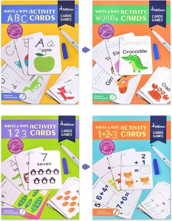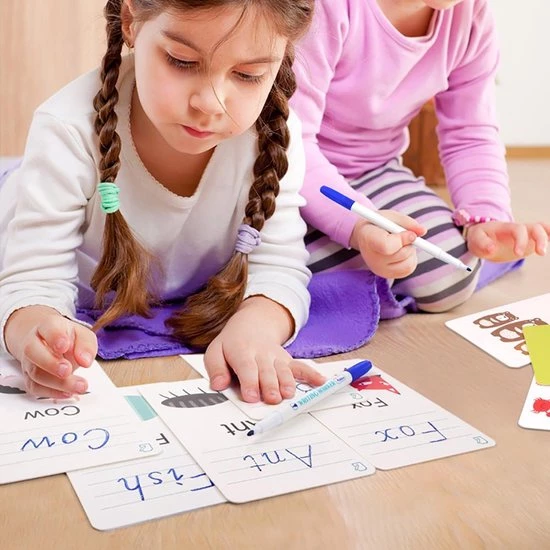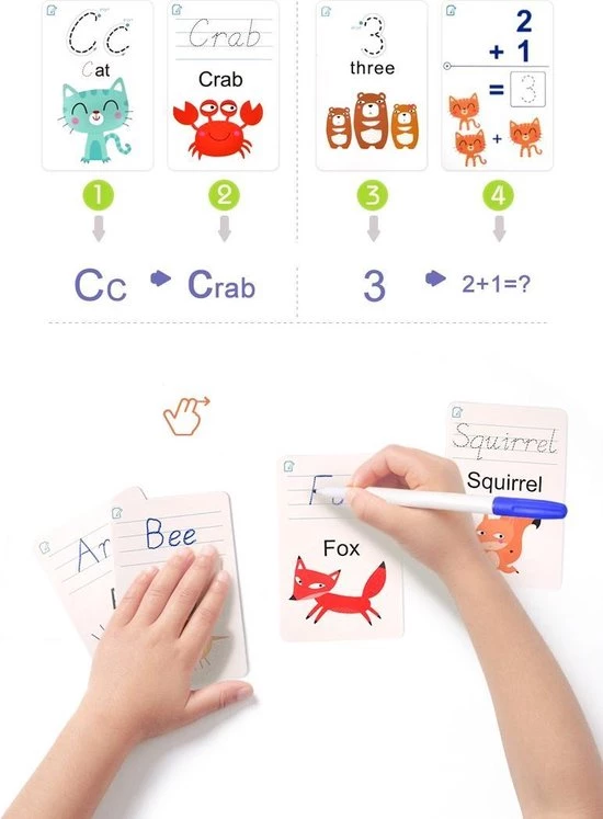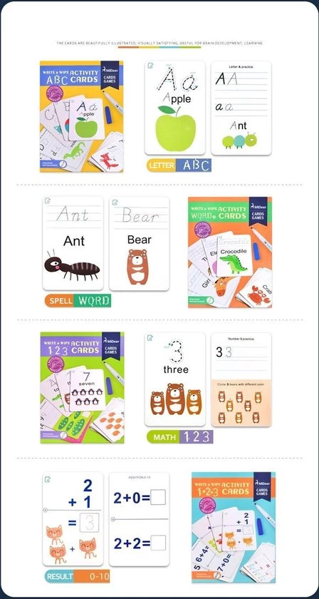 Dit Write-On Wipe-Off-kaartspel heeft herbruikbare oppervlakken, zodat kinderen gemakkelijk hun werk kunnen oefenen, het weg kunnen vegen en opnieuw kunnen beginnen!