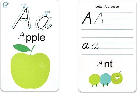 Met 26 kaarten in de doos is er genoeg ruimte voor kinderen om te schrijven, wat herhaling en succes aanmoedigt.