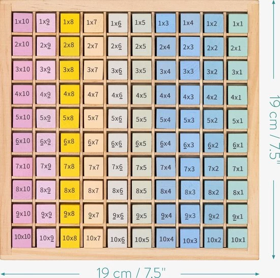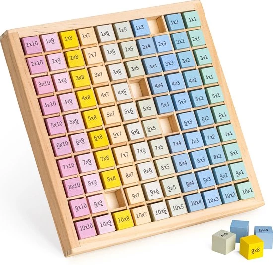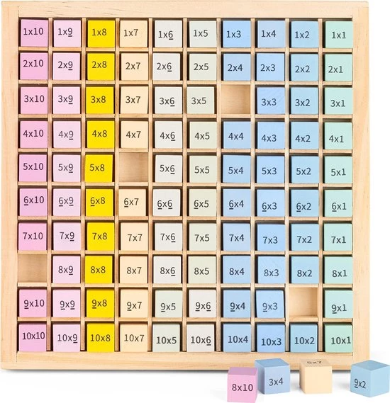 - Met de honderd houten blokjes leren je kinderen de tafel van 1 tot en met 10 kennen. Ideaal als ze naar de basisschool gaan en beginnen met rekenen. De vermeningvuldigingen staan op de voorkant en de antwoorden op de achterkant.