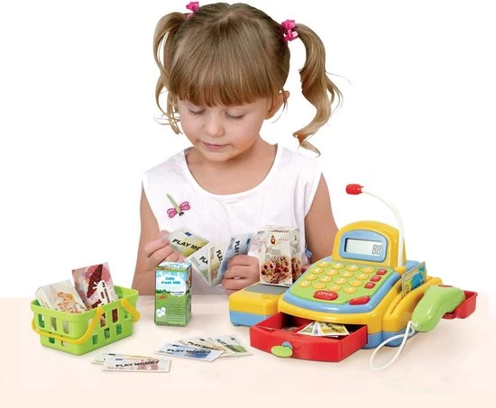 Deze Playgo multifunctionele kassa bevat alles wat je nodig hebt om af te rekenen in je winkel. Geschikt voor kinderen vanaf 3 jaar.