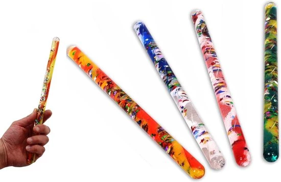 Met de glitterstaf ziet u met zachte bewegingen het mengsel van glitter, zand, confetti en andere vormen voor uw ogen ronddwarrelen. Deze kleurrijke werveling biedt een rustgevende visuele stimulans, perfect om te kalmeren of de concentratie te bevorderen. Door zijn kleine formaat is hij gemakkelijk overal mee naartoe te nemen.