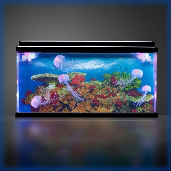 De Jelly Fish Tank is een ideale stressverlichter en hulpmiddel in de klas, die indruk zal maken op degenen die hem zien. De tank bestaat uit 7 prachtige kwallen die zo realistisch zijn dat ze fascineren met hun bewegingen.