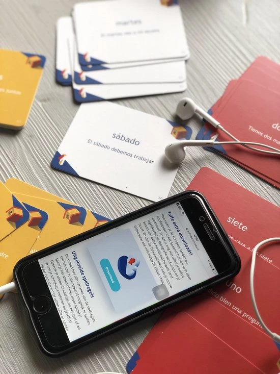 • Een podcast ingesproken door een native speaker, zodat je meteen de juiste uitspraak hoort in het Spaans van alle teksten op de kaartjes