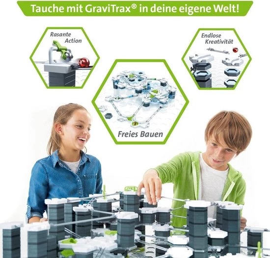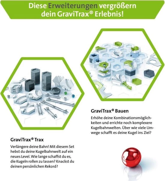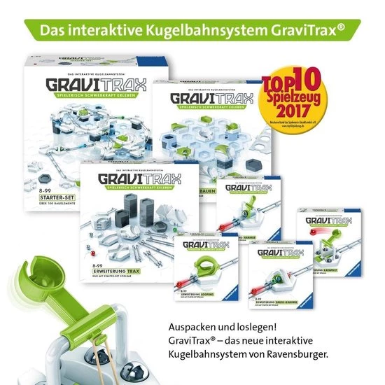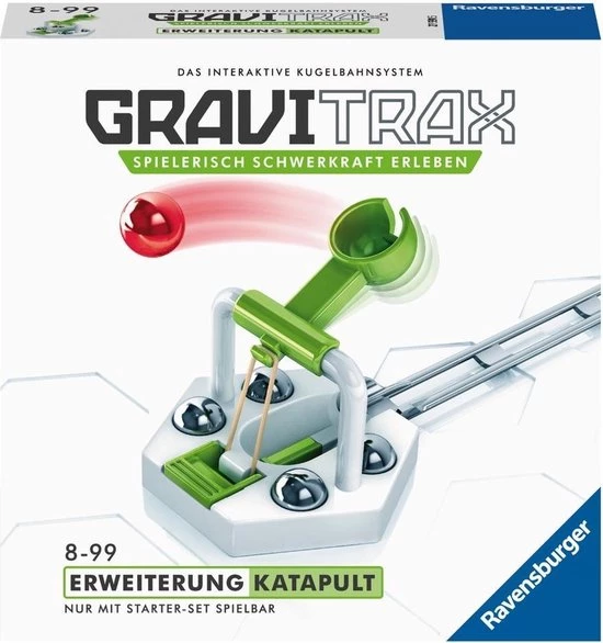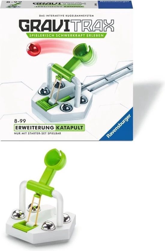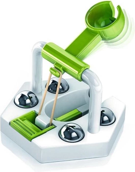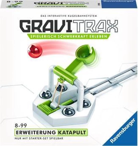 Til de zwaartekracht op en laat je kogels spectaculair door de lucht vliegen. Met de katapult kun je hoogteverschillen en obstakels overwinnen als je het slim gebruikt. Combineer de katapult met uw GraviTrax starterset en breng nog meer Action in uw trajectgangen. Breng je kogels in je doel? Het bouwplezier kent geen grenzen.
