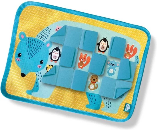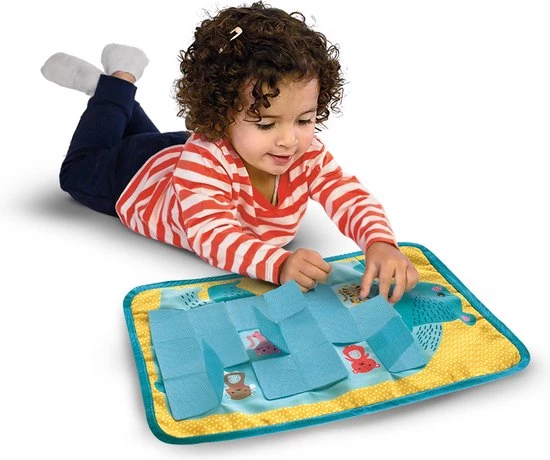 Kiekeboe! Heb jij twee dezelfde dieren ontdekt? We hebben 18 dieren verstopt, waarvan er telkens twee dezelfde te vinden zijn. Lukt het jou om de negen dieren combinaties te vinden? De mat is gemaakt van textiel met zachte flapjes van vilt. Doordat er geen losse kaartjes in deze memo set zitten neem je de mat gemakkelijk overal mee naar toe. Er zitten geen kleine onderdelen in, dus dit product is uitermate geschikt voor de allerkleinsten.