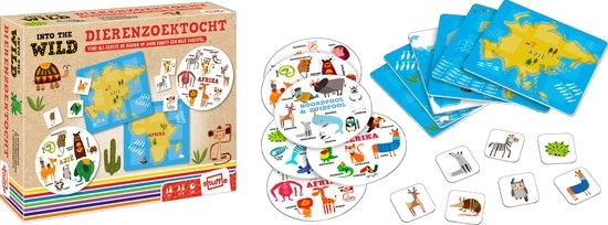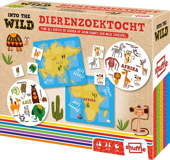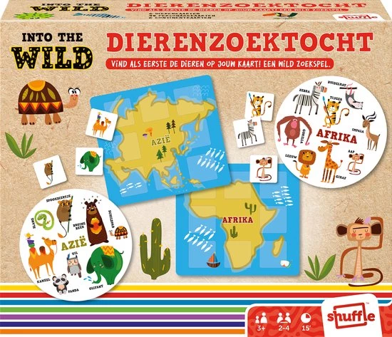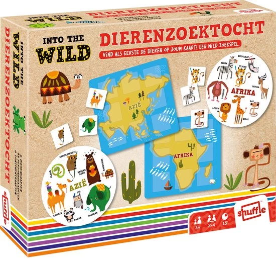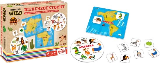Shuffle – Into The Wild – Dierenzoektocht voor peuters – Stimuleer Cognitieve Vaardigheden, Dierenkennis, Geografie en Sociale vaardigheden