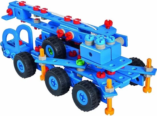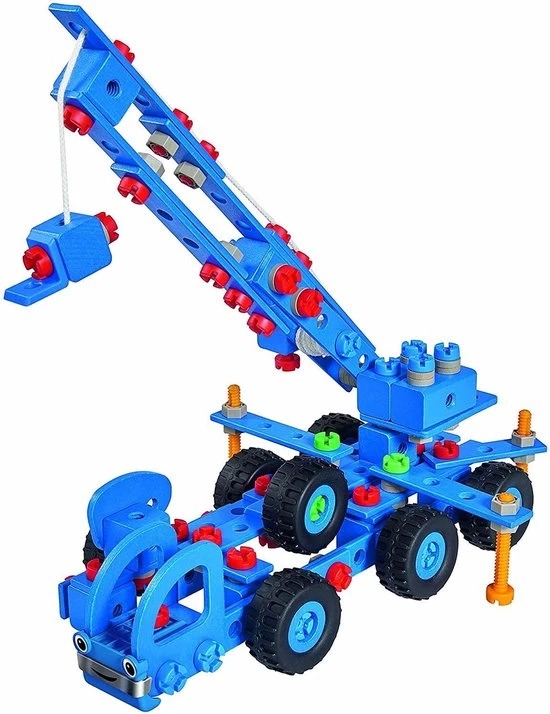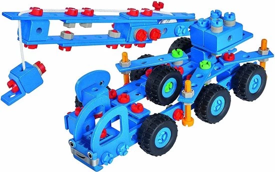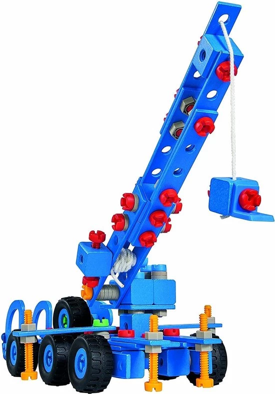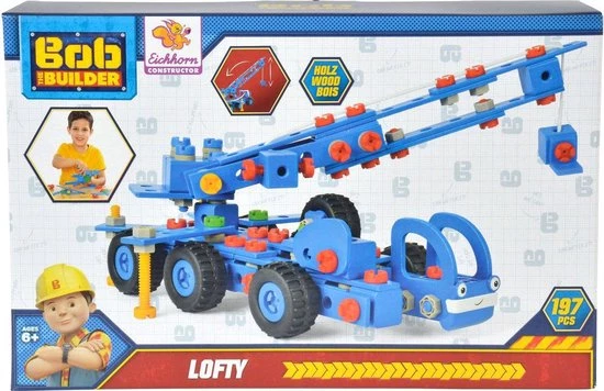 Maak machine Liftie uit Bob de Bouwer na met deze constructor set van Eichhorn. Monteer de gekleurde houten onderdelen met de kunststof schroeven aan elkaar en zie een stoere hijskraan verschijnen. Monteer de kabel en verplaats de bouwmaterialen op de bouwplaats van Bob.