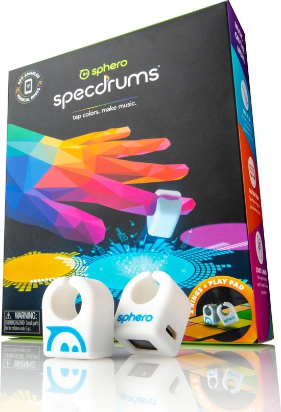 Sphero Specdrums zijn app-enabled muzikale ringen waarmee kleuren in geluiden veranderen en je van de wereld een instrument kunt maken. Verbind met de Specdrums MIX app en tik op allerlei kleuren op bijvoorbeeld kleding of tekeningen om geluiden, beats en loops te cre?ren. Doe dit alleen of samen, waar en wanneer je maar wilt.