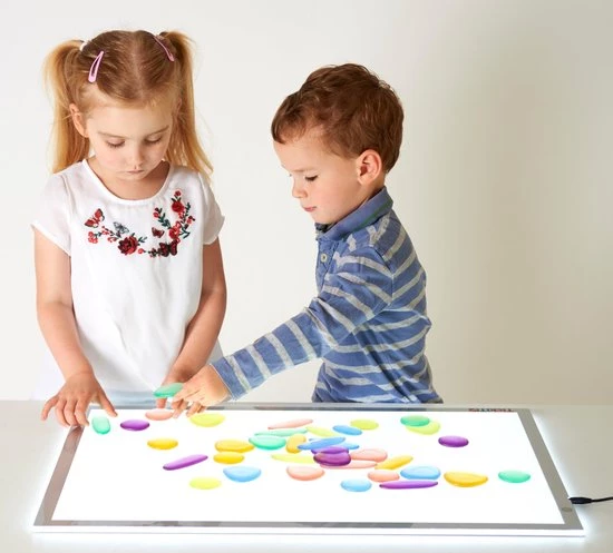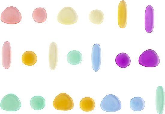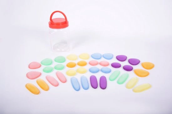 An appealing early construction and manipulative set, ideal for developing fine motor skills and are fascinating viewed on a light panel. The smooth pebbles come in 3 shapes and 6 soft translucent colours. Includes activity guide and supplied in a convenient storage jar.